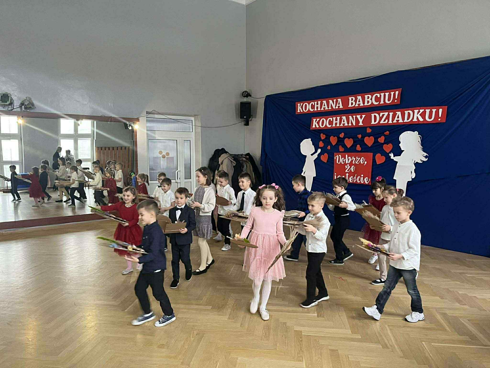 29 stycznia w oddziale przedszkolnym odbyła się bardzo ważna uroczystość. Na zaproszenie dzieci przybyli licznie zaproszeni goście - Babcie i Dziadkowie. Uroczystość rozpoczęła się częścią artystyczną przygotowaną przez nasze przedszkolaki, które zaprezentowały wiersze, piosenki oraz układy taneczne. Występy zostały nagrodzone gromkimi brawami i wzruszeniem zaproszonych gości. Po części artystycznej dzieci złożyły swoim Babciom i Dziadkom serdeczne życzenia oraz wręczyły własnoręcznie wykonane obrazy z suszonych kwiatów. Spotkanie przebiegało w miłej, rodzinnej atmosferze i było okazją do wspólnego świętowania. Po uroczystości wnuczęta ustawiły się do rodzinnych zdjęć.