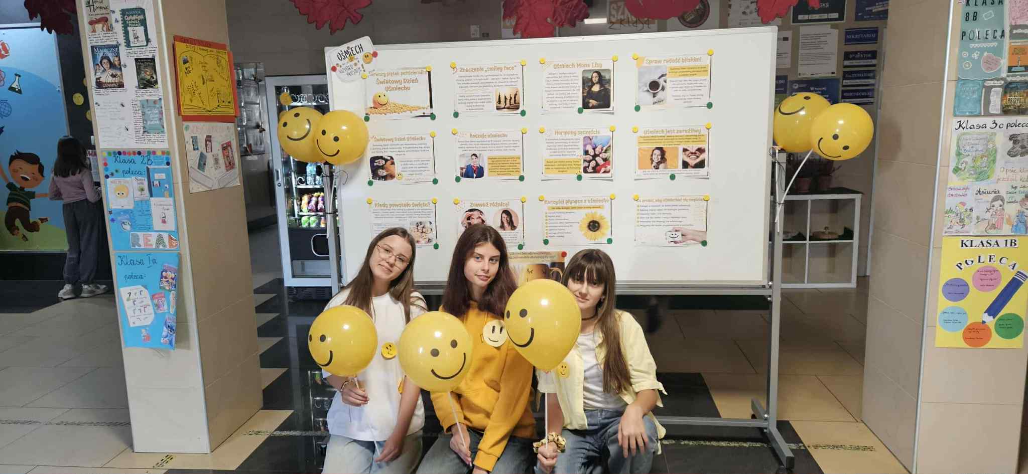 W ubiegłym tygodniu uczniowie naszej szkoły dokładali starań, aby rozwijać pozytywne relacje rówieśnicze. Zdobywali wiedzę o cyberprzestrzeni, szkodliwości hejtu, czy sposobach na stres. Wspólnie świętowaliśmy również Dzień Uśmiechu. To radosne święto obchodzone w pierwszy piątek października przypomina nam o sile i wartości uśmiechu – prostego gestu, który nic nie kosztuje, a może odmienić czyjś dzień. Uśmiech jest jednym z najpotężniejszych narzędzi komunikacji, jakie posiadamy. W tym roku Dzień Uśmiechu przypadł 3 października. Z tej okazji Samorząd Uczniowski zorganizował w naszej szkole akcję pełną pozytywnej energii. Uczniowie i nauczyciele obdarowani zostali uśmiechniętą emotką, cukierkiem i balonem z uśmiechniętą buźką. Na znak celebrowania Światowego Dnia Uśmiechu uczniowie i nauczyciele przyszli ubrani do szkoły w żółtych barwach. Od samego rana na korytarzach szkolnych panowała wyjątkowa, radosna atmosfera, a wspólne świętowanie przypomniało nam, że drobne gesty mają wielką moc.