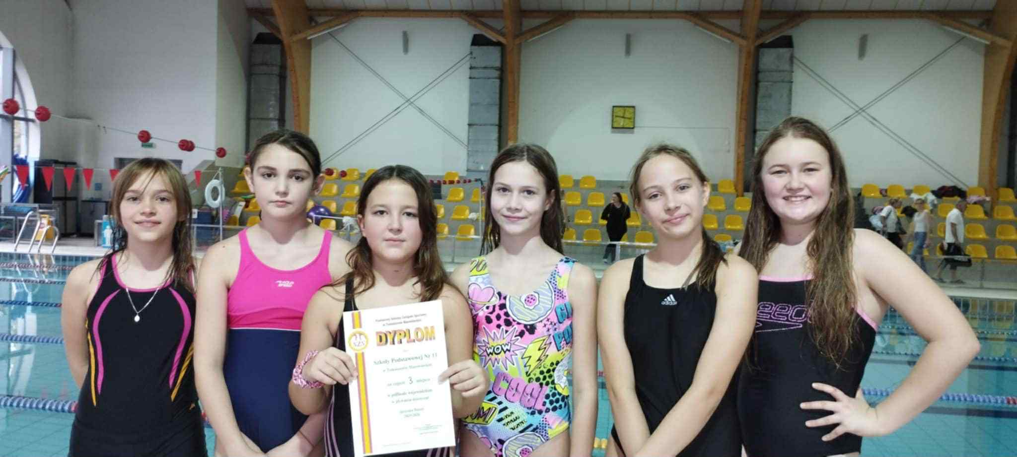 Nasze pływaczki: Nina Składanek, Maja Ożarska, Oliwia Majka, Wiktoria Kwapisz, Hana Wielgus i Laura Zdralewicz, startujące w półfinale wojewódzkim zawodów w pływaniu drużynowym zajęły III miejsce. Dziękujemy i gratulujemy serdecznie!