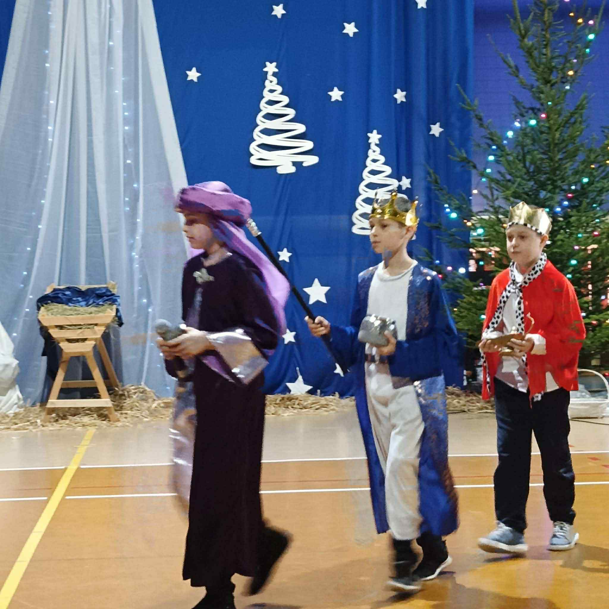 19 grudnia odbyły się w naszej szkole przepiękne, pełne zadumy jasełka pt. „Wesoła Nowina”. Występ artystyczny dla całej społeczności uczniowskiej oraz rodziców i nauczycieli przygotowali uczniowie klas trzecich.Spektakl uświetnił występ chóru szkolnego. Przedstawienie nawiązywało do tradycyjnych jasełek bożonarodzeniowych, a niezwykłej magii dodał taniec Śnieżynek. Na zakończenie cała społeczność szkolna wspólnie odśpiewała kolędę „Bóg się rodzi”. W tym wyjątkowym, świątecznym czasie mieliśmy zaszczyt gościć Dyrektor Wydziału Edukacji Urzędu Miasta w Tomaszowie Mazowieckim, panią Iwonę Sudak. Świąteczny występ wprowadził wszystkich w wyjątkową, pełną radości i wzruszeń atmosferę Świąt Bożego Narodzenia.