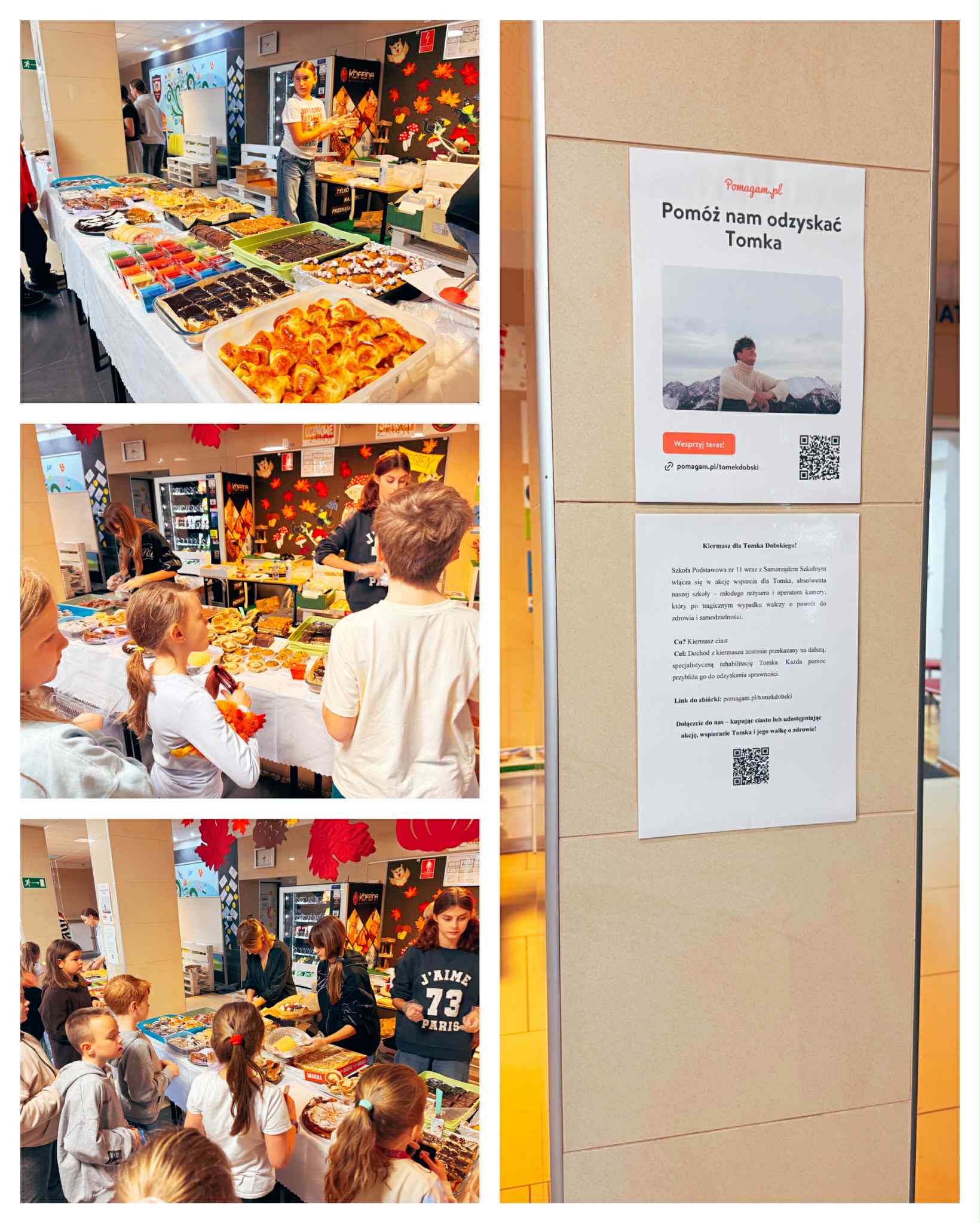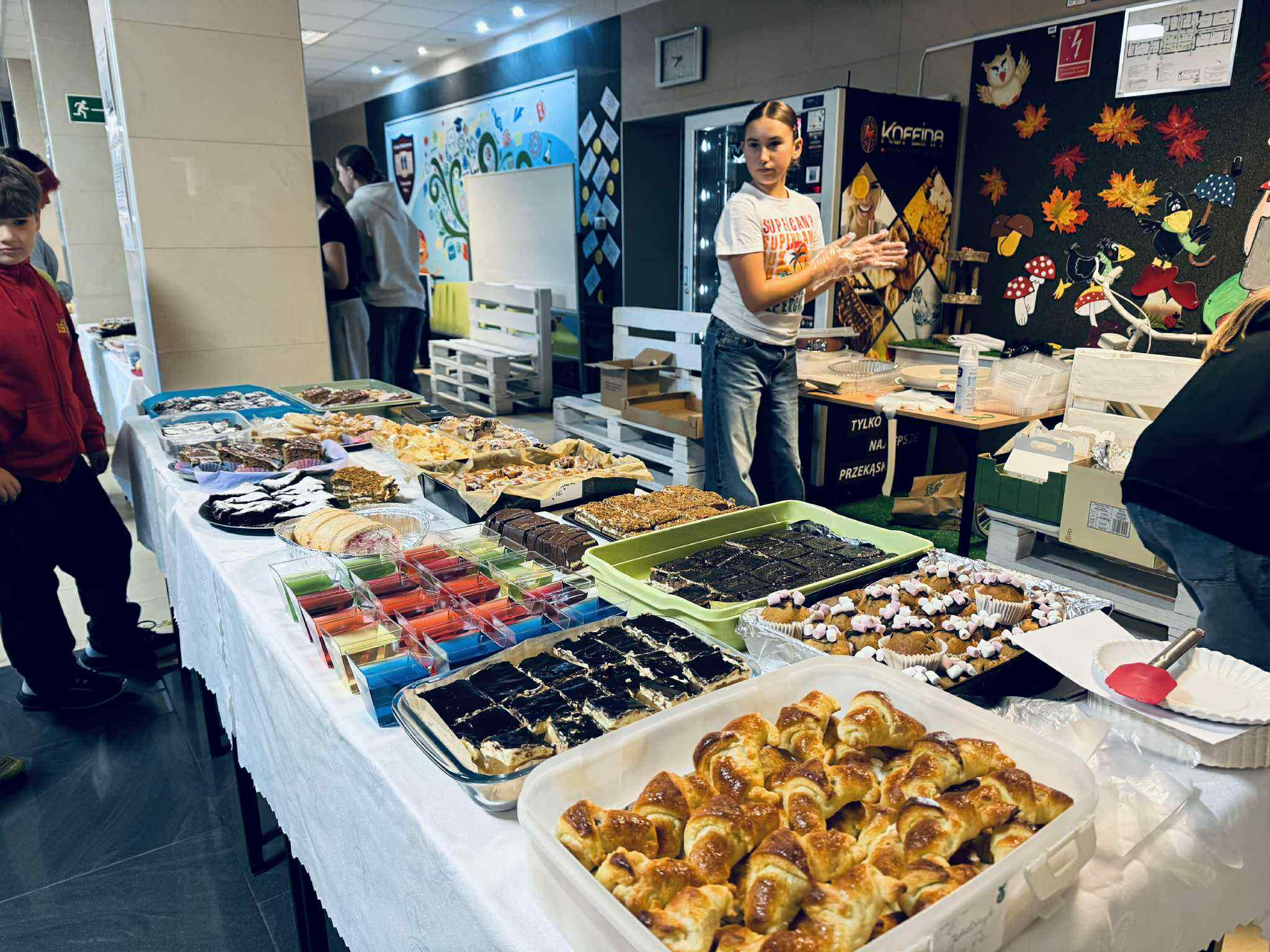 4 listopada w naszej szkole odbył się wyjątkowy kiermasz ciast, zorganizowany z myślą o naszym absolwencie Tomku. Jesteśmy niezwykle dumni, że tak wiele osób włączyło się w tę akcję! Serdeczne podziękowania dla rodziców, którzy z ogromnym zaangażowaniem przygotowali pyszne wypieki – Wasze wsparcie jest bezcenne! Dziękujemy również uczniom, którzy z radością kupowali ciasta i przyczynili się do wspólnego sukcesu. Dziękujemy za każdą złotówkę, każdy kawałek ciasta i każde dobre słowo – razem potrafimy czynić wielkie rzeczy! Razem pokazaliśmy, że społeczność „Jedenastki” ma wielkie serca i potrafi zjednoczyć się w dobrej sprawie!