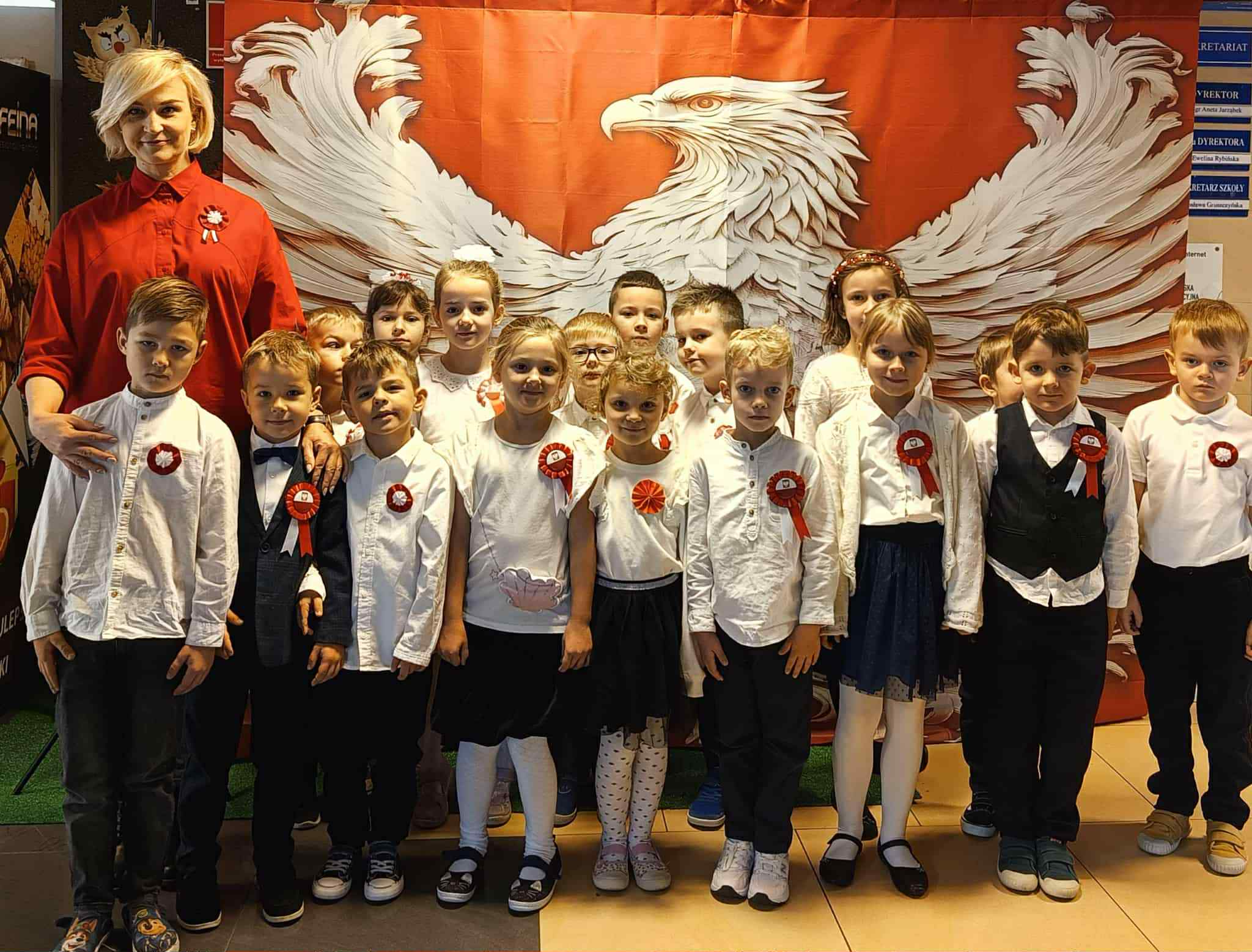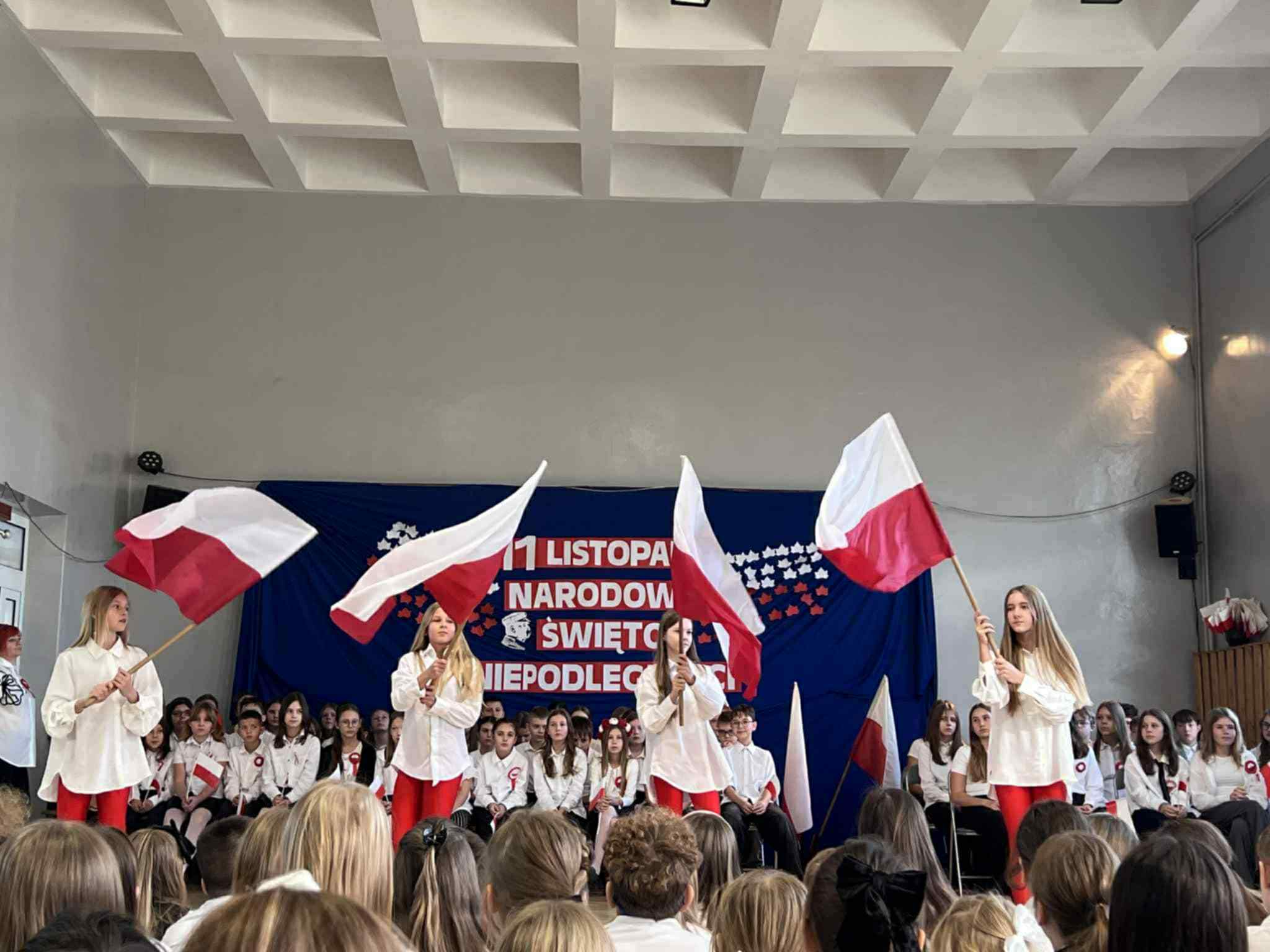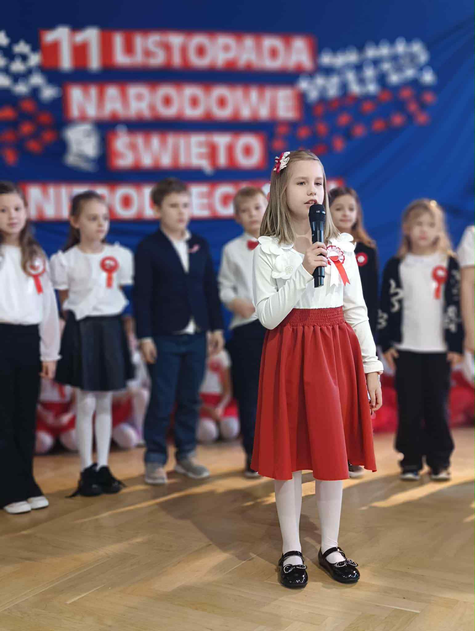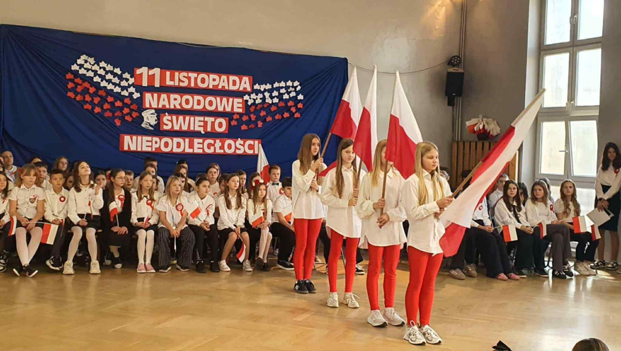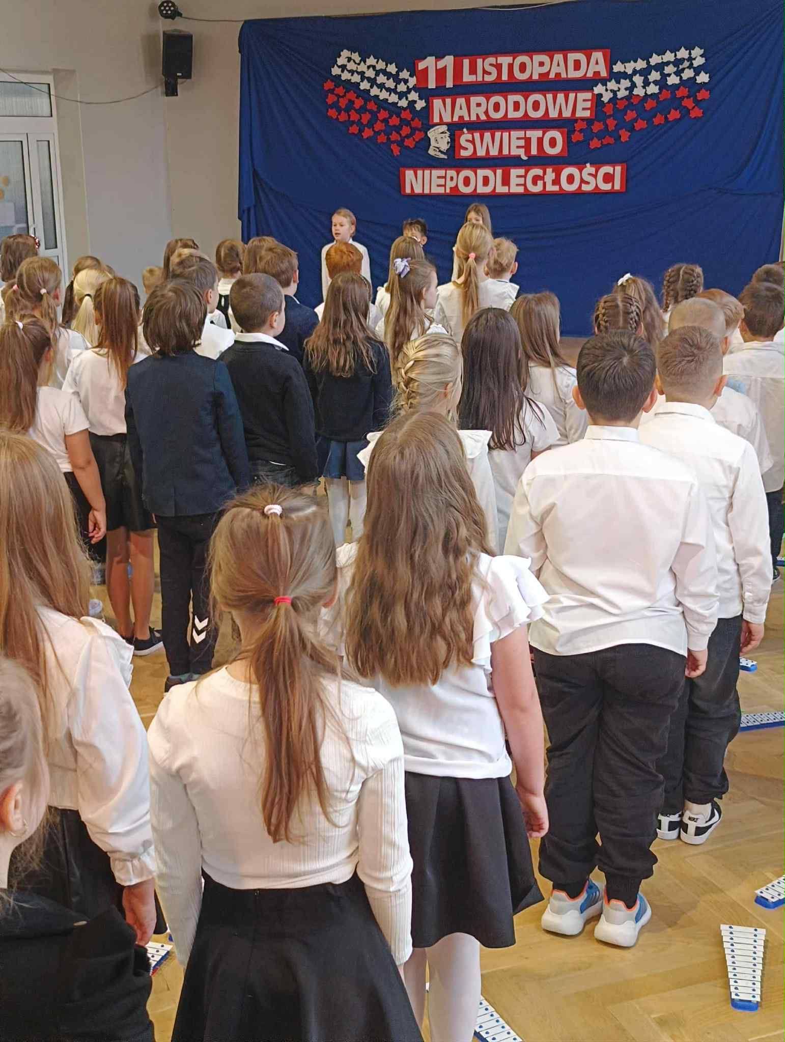 Jak co roku dumnie i uroczyście obchodziliśmy w naszej szkole kolejną rocznicę odzyskania przez Polskę niepodległości. Wszyscy uczniowie odświętnie ubrani uczestniczyli w przygotowanych z tej okazji akademiach. Najpierw swój występ artystyczny zaprezentowały klasy młodsze, które przygotowały piękny i wzruszający montaż słowno-muzyczny. Nie zabrakło w nim pieśni patriotycznych, gry na instrumentach oraz tańca. Następnie odbyła się uroczystość patriotyczna przygotowana przez uczniów klas 6-8. Podczas występu można było usłyszeć m.in. chór szkolny oraz wyjątkowy występ wokalny ucznia z klasy czwartej. Uczennice klasy szóstej zaprezentowały także piękny i nostalgiczny taniec z flagami. O godzinie 11.11 wspólnie odśpiewaliśmy Mazurka Dąbrowskiego w ramach corocznej akcji MEN SZKOŁA DO HYMNU.